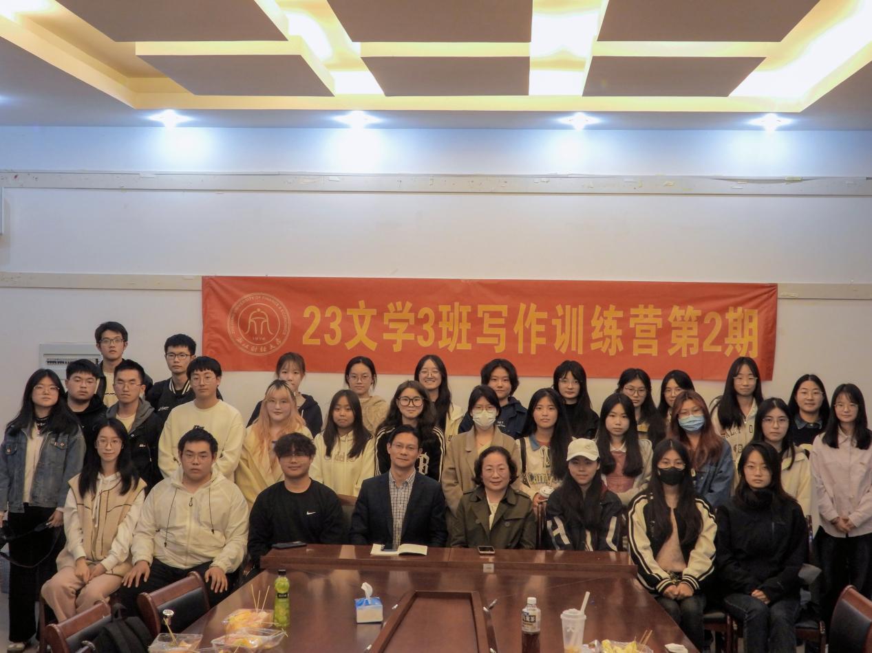 为更好践行散文创作实践,提高员工文学素养,开拓写作视野。3月28日下午,23级文学3班第二期写作训练营在7号楼404室举行。本次活动由班主任王迅老师主持,公司党委副书记袁慧兰出席并讲话,23文学3班全体同学参加。活动伊始,王迅老师点评了同学们的散...