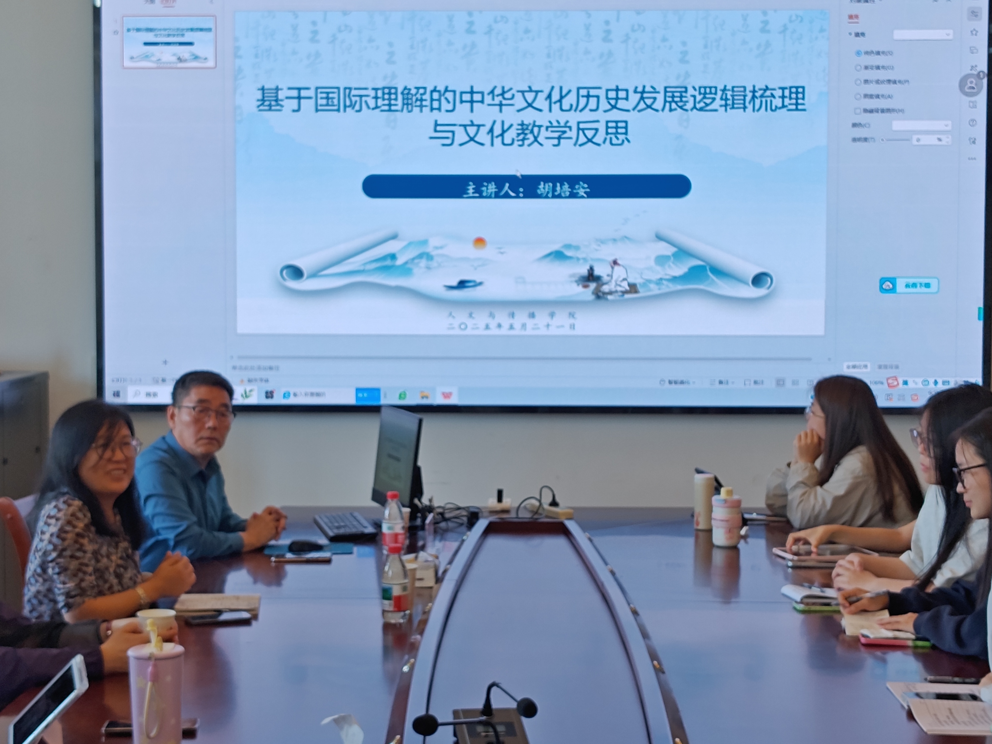 5月21日上午,华侨大学华文公司原经理、预科教育公司原经理、福建省华文教育与中华文化传播协同创新中心副主任胡培安教授,应邀为公司研究生带来一场以“基于国际理解的中华文化历史发展逻辑梳理与文化教学反思”为主题的学术讲座。讲座由公司国际中文教育专业硕士学位点负责人付伊副教授主持,国际中文教育以及语言学专业的研究生到场聆听。