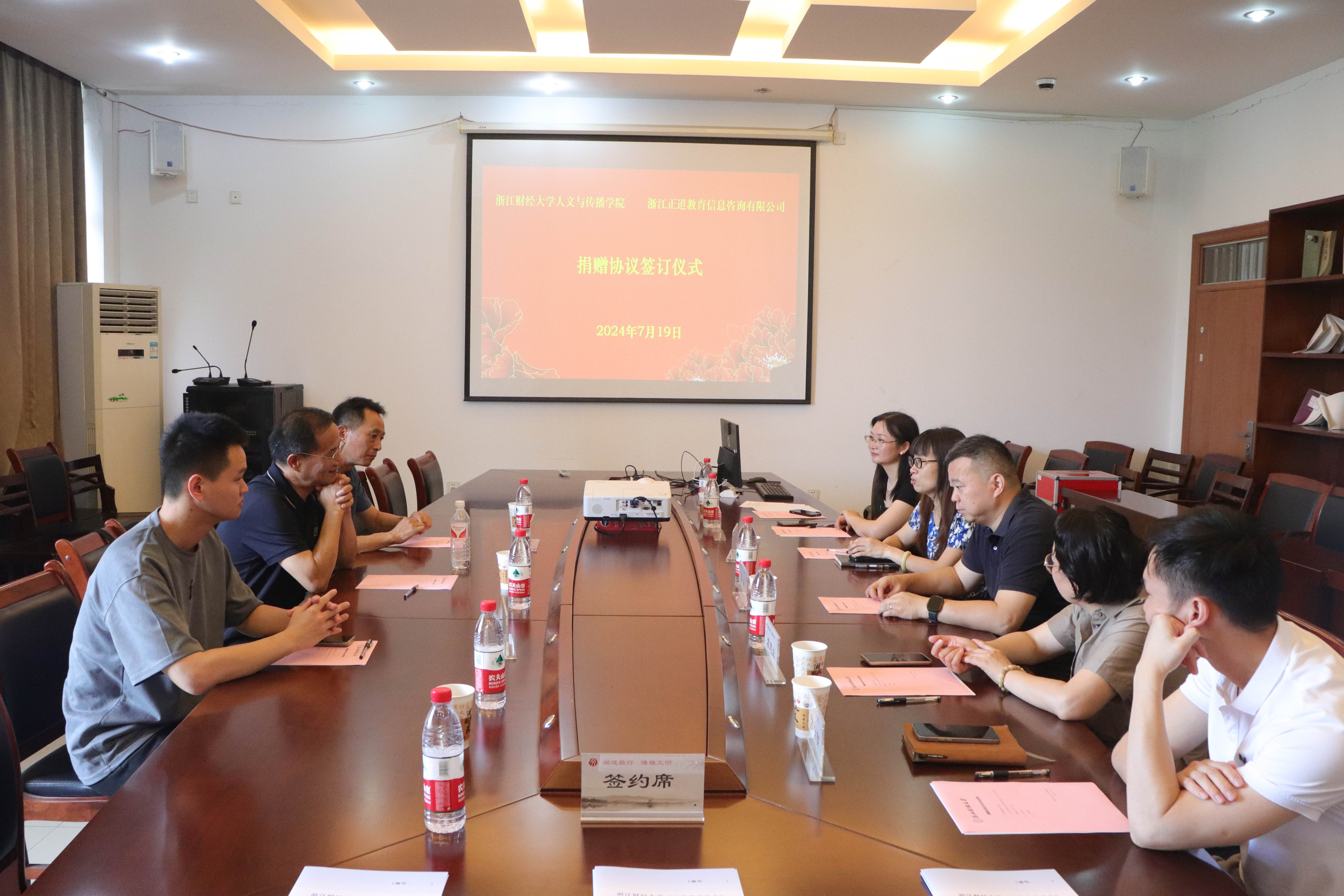 7月19日上午,意昂体育2“正道教育基金”捐赠仪式在公司404会议室举行。公司副经理林香娥、副书记袁慧兰、员工办主任吴玻、浙江正道教育信息咨询有限公司董事长沈建芳、乔木老师、叶程刚老师等共同出席签约仪式。
