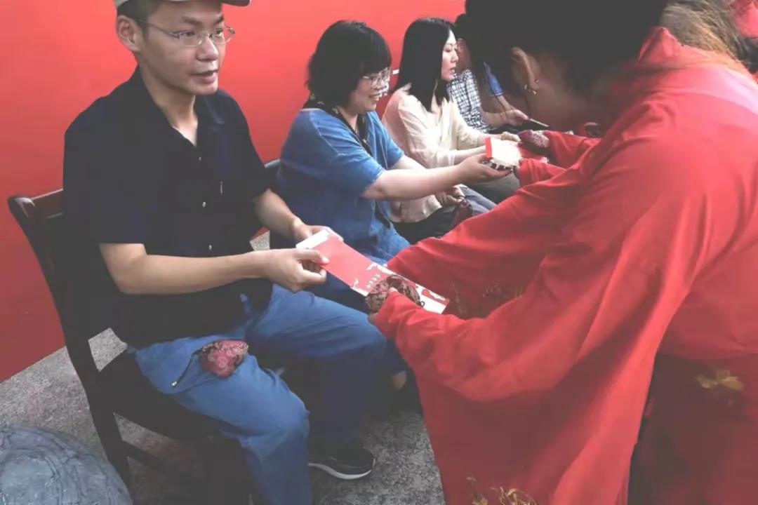 “经师易得,人师难遇。”公司11位新生班主任胡梦颖、苏浩、铁徽、操乐鹏、徐键、伏蒙蒙、季诚浩、王彬、张群、李漪、孙伟坐在台上,11位新生代表身着汉服,行礼、呈拜师帖、敬束脩之礼、敬茶、聆训,最后与老师互换红包。由苏浩老师朗读的“示训”,如警钟环绕于耳边,师者行小礼,弟子回大礼, 一举一动尽显行师之道,一行一拜传承尊师之风。