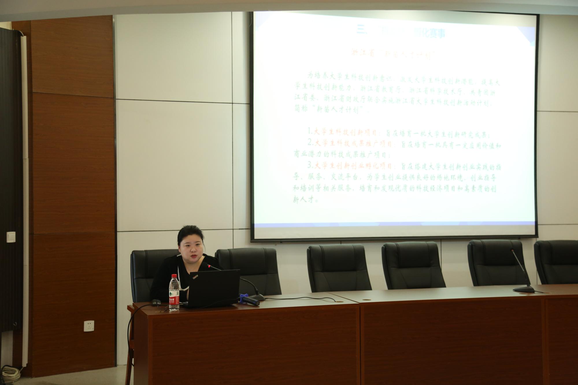 徐艳妍从“挑战杯”和“新苗计划”的赛事介绍、主办经验、项目孵化流程以及相关奖励政策为大家做分享,并以去年获奖项目“非粮化”为例,对项目内容进行了深入剖析和讲解。徐老师指出,项目选题具备独特性、项目申报材料做到丰富凝练,才能产出创新可落地的优质项目。