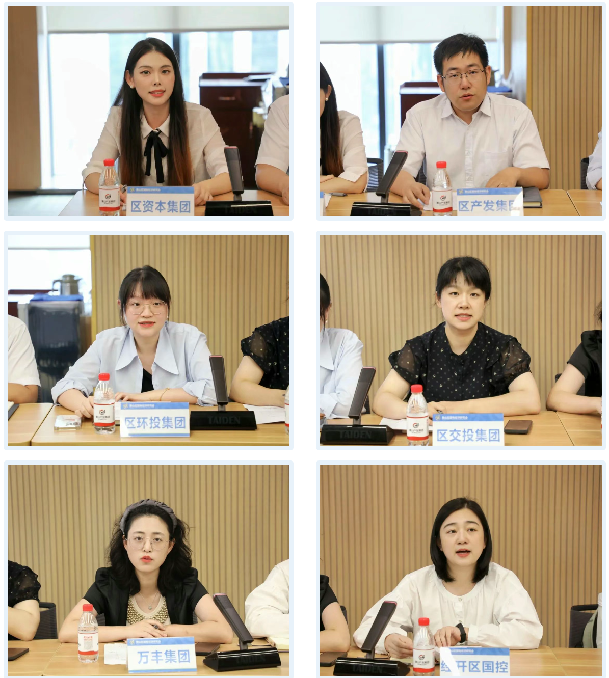 区资本集团、区产发集团、区环投集团、区交投集团、万丰集团、经开区国控集团人事部门负责人分别介绍本单位情况和实习岗位,并对实习生的到来表示欢迎。