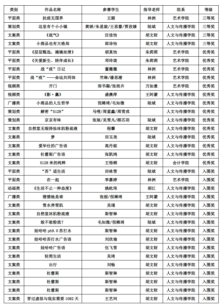 近日,浙江省第八届老员工广告创意设计竞赛(简称“省赛”)作品评审揭晓,共选拔62所高校702件作品参加全国老员工广告艺术大赛(简称“国赛”),其中公司共34件作品获得省赛奖项,并获报参加国赛资格。此次省赛获奖作品中,公司共获得三等奖4项,优秀奖14项,入围奖16项。