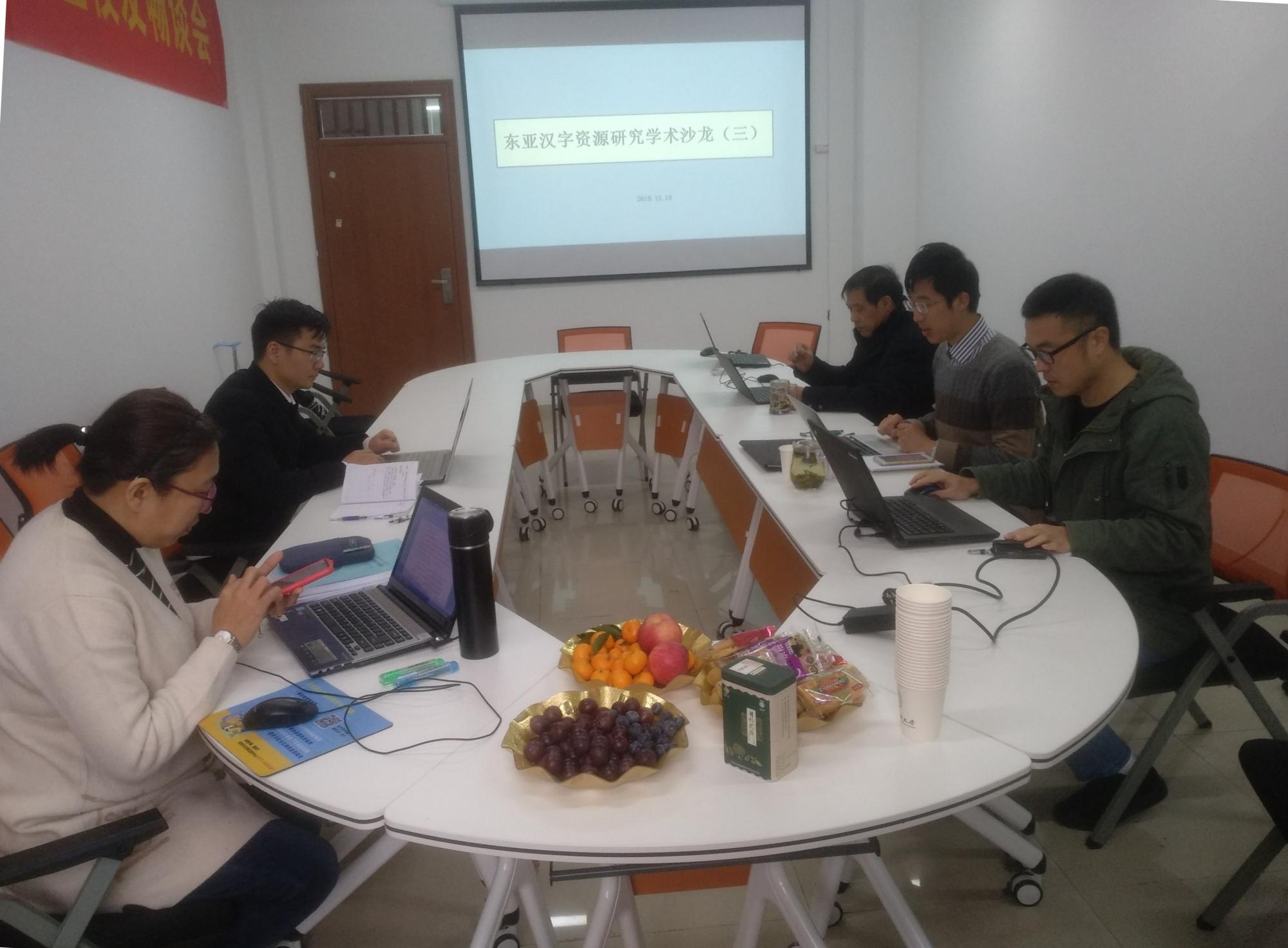 12月19日周四下午,东亚汉字资源研究中心在7-403举行第三次学术沙龙。此次沙龙主题为“汉字域外传播史(3)”,由中心主任何华珍教授主持,王泉、徐键、苏浩、铁徽等老师以及龚昌成等研究生参加。大家就日本汉字的构形、日本文字变迁、朝鲜半岛的固有汉字和传承汉字、越南汉字字体等内容做了梳理和讨论,并仔细审察了目前研究的问题点。本次沙龙还对2020年的科研方向和主要任务做了展望和规划,预计在2020年1月初进行第四次学术沙龙。