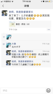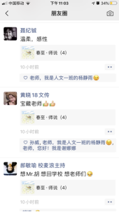“春至·师说”系列专栏活动在员工中引发了大量关注与转发,取得了良好的教育效果,受到员工和家长们的热捧。16级文学专业费同学留言,“感谢老师们的挂念,见字如面,闻声如晤,那么亲切,依然是坐在课堂里听课的感觉。”17数媒郝同学留言朋友圈“好想回公司,好想老师们”;18文传班的陈同学点赞老师们,说他们都是“宝藏老师”;19级文传4班吴同学留言:“感谢老师们挂念,我会更努力,期盼再相聚”;18级陈同学家长留言:“今天看了好几遍,听了好几遍,仅是听老师们朗读就令人沉醉了”