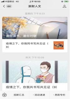 随着新冠肺炎形势的日益严峻,教师党员们在对疫情的担忧中自觉担负起自己的育人职责。支部优秀党员姚晓萍老师多年来承担专业《写作》课程,写作教师的专业敏感性使她敏锐捕捉到员工正在经历他们一场平生最为严格的心理“学习”与“考试”,为激发员工对社会公共事件的关注和思考,提升员工通过写作表达世界观、人生观、价值观的能力,她向公司提出举办“抗疫”征文活动的构想,并主动请缨担任审稿人。2月9日,意昂2启动了“疫情之下,你我同书写共见证”征文活动,征稿启事发布后,员工们积极响应,截止2月20日,收到意昂2及其他公司学子抗疫征文近30篇,每篇文章都经姚老师仔细审稿和精心修改后,由“浙财人文”公众号持续推出。在这场全国性的疫情当中,员工们通过力透纸背的文字表达了当代年轻人的担当和使命感,也学会了辨识来自四面八方的观点和声音,深化了对当代中国、当代社会的个体自觉意识。