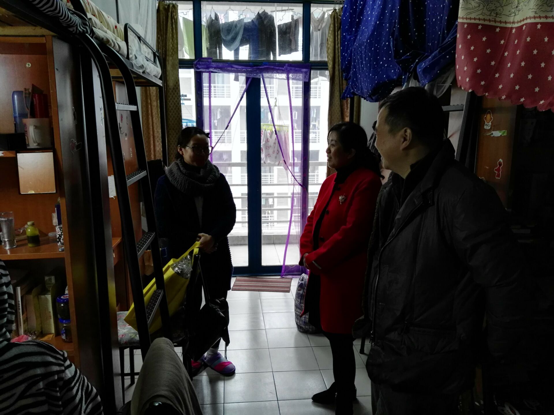 在走访过程中,高燕书记和吴玻书记在员工公寓中与同学们进行了亲切交谈,细心询问了同学们这一年来学习、生活、情感等各方面的情况,勉励自强学子要保持积极向上、乐观开朗的态度过好老员工活,踏实勤奋、努力坚持地走好自己的人生道路。
