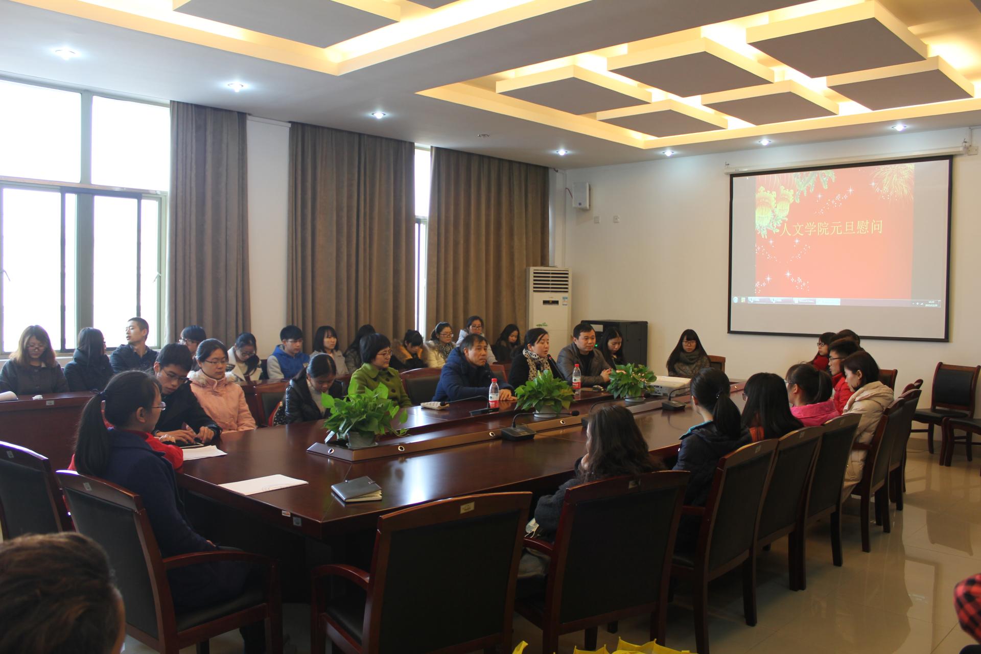12月29日下午,在公司楼404会议室召开贫困生新年座谈会,经理何华珍、党总支副书记(主持工作)高燕、副经理姚红、党总支副书记吴玻出席,助困辅导员张旭及60多位家庭经济困难员工参加。会议由吴玻主持。