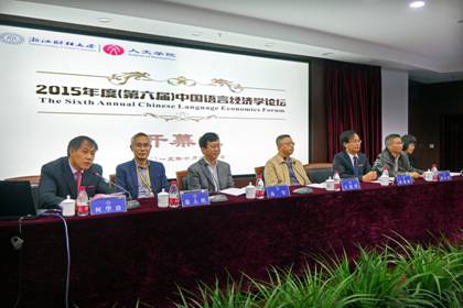 北京语言大学党委书记李宇明教授为本次论坛发来了书面贺信,教育部长江学者、山东大学经济研究院经理黄少安教授致开幕辞。教育部语信司规划协调处易军处长、浙江科技公司党委书记王建华教授、浙江省语委办王振斌主任等出席了开幕式。