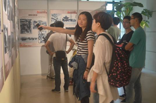 同学们首先参观了中国抗日战争胜利70周年的展览。展馆以图片和实物相结合的形式再现了那个烽火连天的年代,展现了革命烈士们勇赴国难,英勇不屈的感人事迹。参观结束后,支部成员纷纷在留言簿上签名留言,表达了对英雄们的崇高敬意。