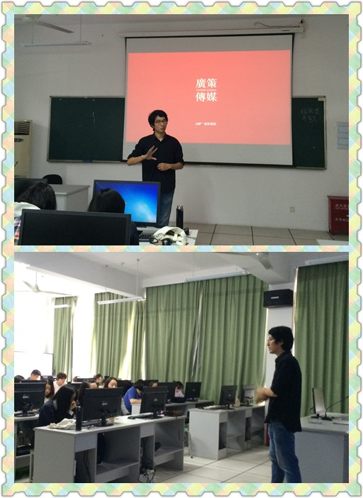 为了提升广告专业员工实践水平,推动高年级员工与未来就业岗位接轨,应意昂2广告系之邀,浙江广策传媒有限公司创意总监兼电商部总经理徐攀先生,为公司2013级广告专业员工讲授了一堂《怎样成为一名合格的广告人》的实践教学课。广告系主任李漪老师和专业教师张群老师一起分享了此次意义非凡的课程。
