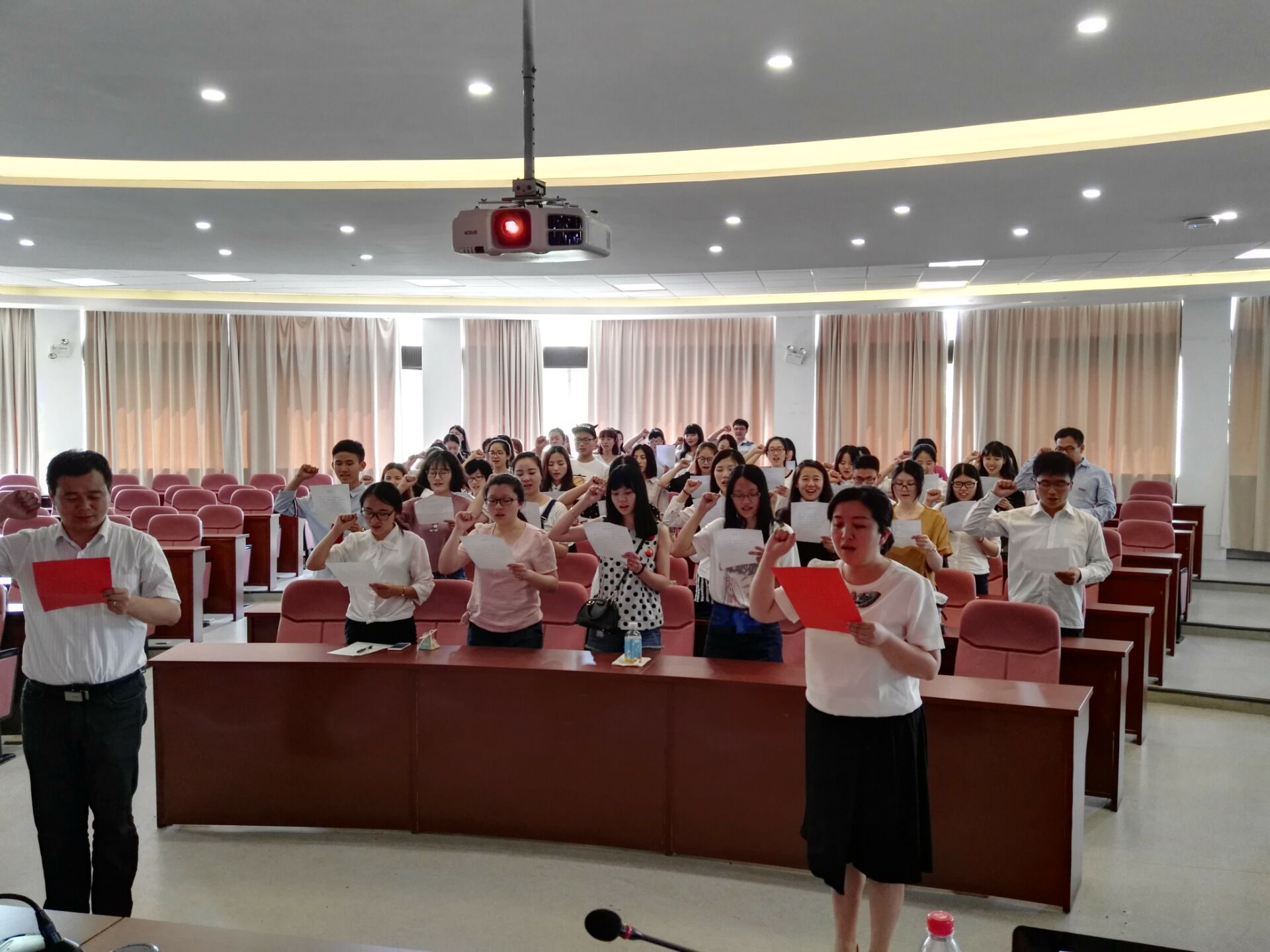 大会尾声,全体毕业生党员在公司领导的带领下,在党旗下重温入党誓词。
