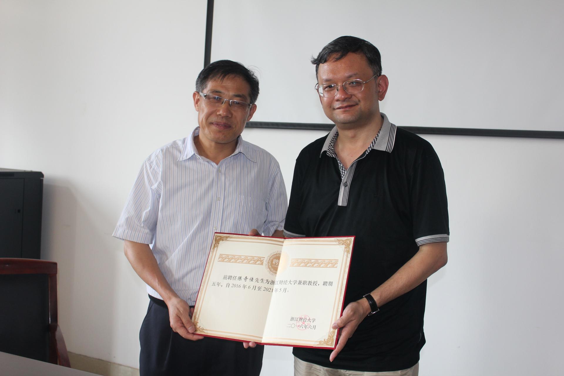 之后,何华珍经理为陈奇佳教授颁发了兼职教授证书。本次座谈会圆满结束。