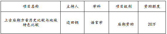 根据全国哲学社会科学规划办公室网站公布的消息,公司边田钢博士申报的“上古后期方音历史比较与地域特色比较”,获2017年度国家社科基金后期资助项目的立项。至此,公司在研国家级科研项目已达17项。