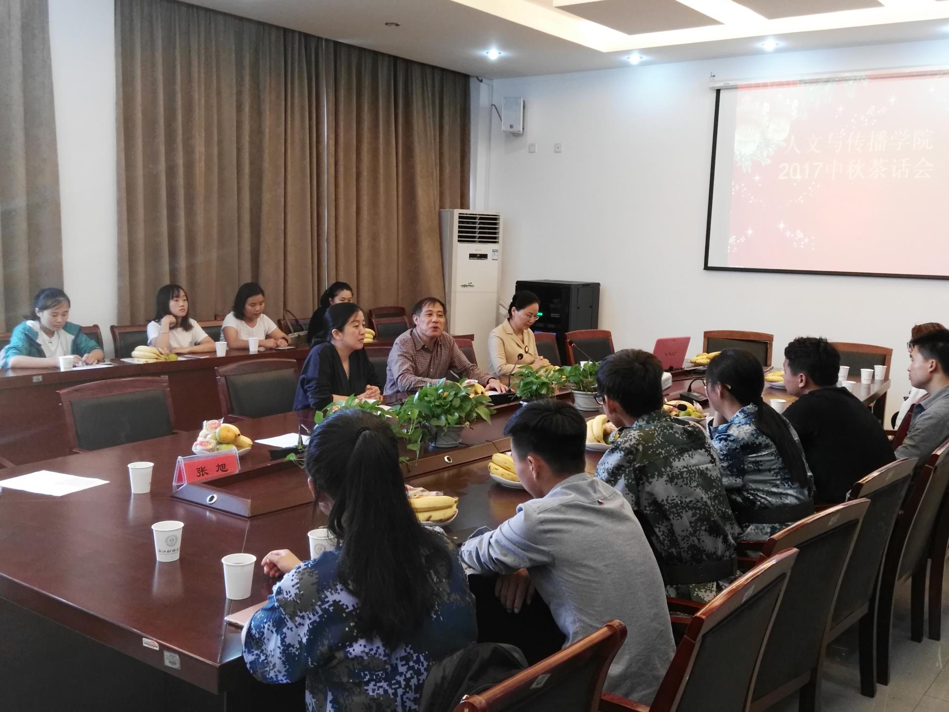 9月28日中午,公司在公司楼404会议室举办了2017中秋茶话会,经理何华珍老师、公司党委书记高燕老师、数字媒体系胡江老师、汉语国际系刘亚辉老师、辅导员及员工代表20多人欢聚一堂,喜迎佳节,茶话会由高燕书记主持。