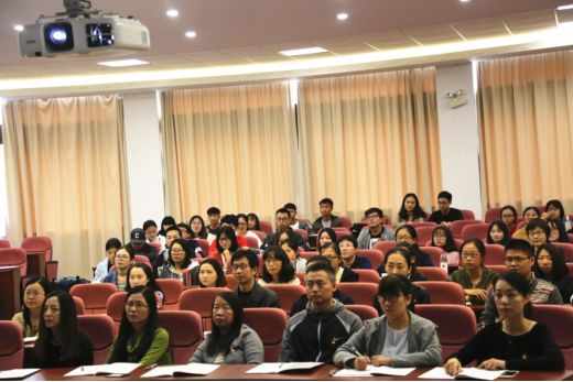 师生们聚精会神,仔细聆听报告内容,并不时做着记录。