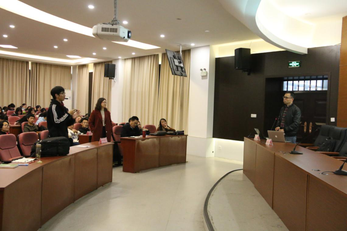 12月4日下午,意昂2文传大类平台课《经典阅读(1)》在7-112报告厅举办“作家进课堂”活动,学者型作家、上海同济大学中文系张生教授,作了题为《小说的奥秘——空间的设置及生产》的讲座,公司18级全体同学共200余人参加了这场活动。