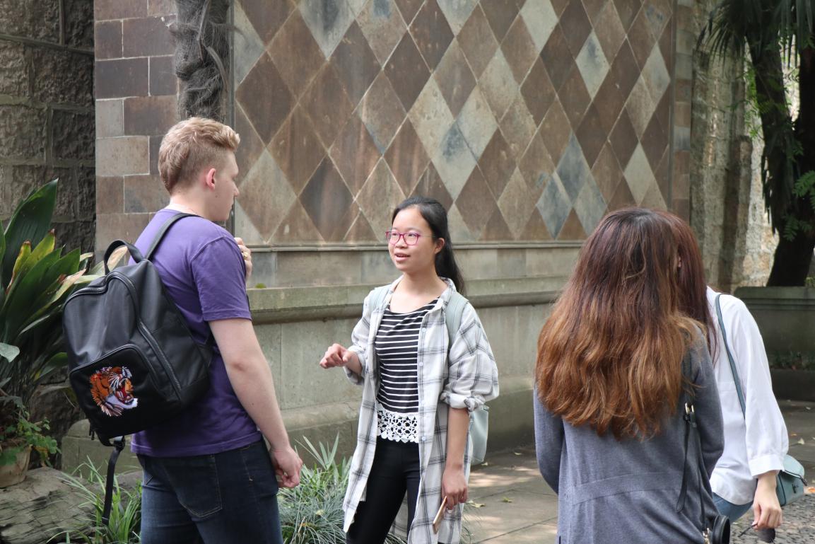 在课堂的讨论阶段,中外员工组成一个个小组,每组的中国员工用汉语和英语为职工介绍了卫匡国及其他著名汉学家。大家还讨论了明清之际中西交流对当今的启示、杭州在“一带一路”倡议中的作用。来自哈萨克斯坦的职工Alina表示:“纪念园虽然不大,但有着厚重的历史感。中国同学的讲解让我收获很大!”17汉语国际教育专业的王嘉琪说;“纪念园让我身临其境般地感受到了汉学家们在中国的那段历史,使课堂上的内容鲜活了起来。再加上和职工们一起参观、交流、学习,真是受益匪浅。”