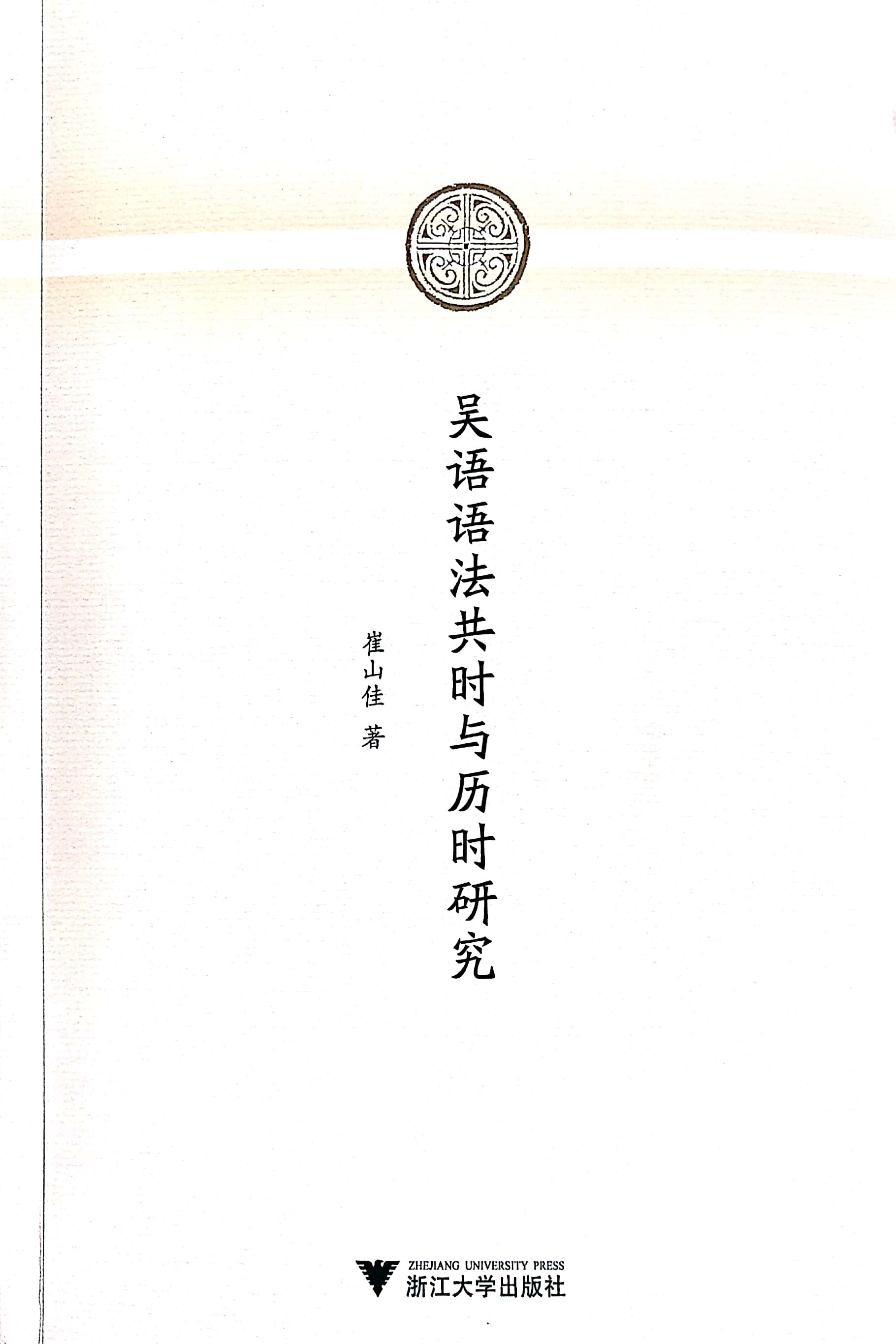 崔山佳教授专著《吴语语法共时与历时研究》已于2018年12月由浙江大学出版社出版,此书为意昂体育2中国语言文学一流学科学术丛刊之一种。
