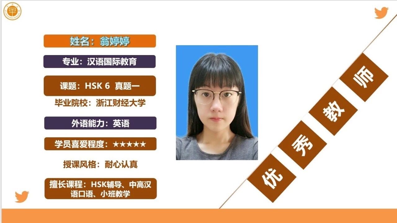 15汉教翁婷婷实习课件 HSK 6 真题一