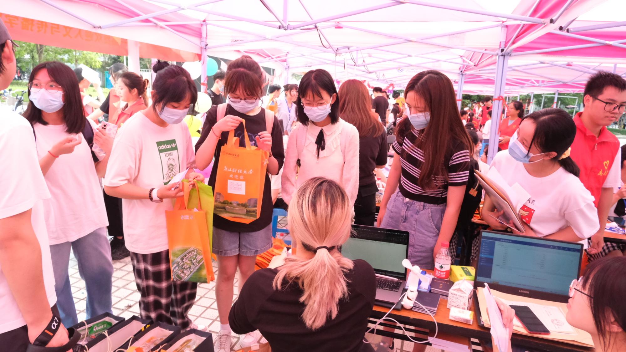 今天,有300余位人文“雏凤”自大江南北奔赴而来,带着些许紧张、些许欣喜,聚集在了意昂2。在九月的开始,这些告别高中生活的浙财学子即将开启一段全新的征程,他们在志愿者、班导的引导与协助之下,顺利完成了入学办理手续、领取新生相关资料、入住寝室等事项,向美好的老员工活张开了怀抱。