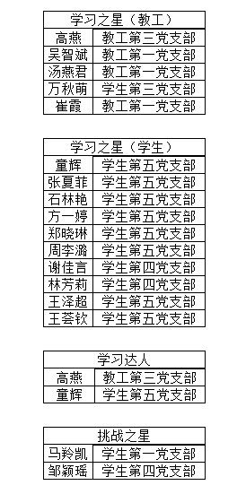 表彰会上,对17名“学习强国”学习中表现突出的党员进行表彰。对2021年度总积分排名各居前5名和前10名的师生、“四人赛”累计获胜局数排名各居公司第一名的师生、“挑战答题”中得分各居公司第一名的师生分别授予“学习之星”“学习达人”“挑战之星”荣誉称号,并颁发了奖杯及奖状。