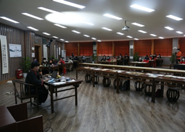 活动二“书写汉字”,由老师们和21级硕士研究生李昕、20级中文阮斌杰介绍示范各类书体,通过展示名家书体来讲解汉字书法的各个形体及其特点,并阐述了每个书体的书写要点以及分享了自身在书法练习上的心得与体会。