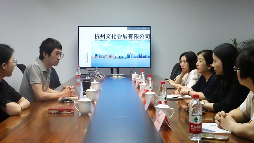 6月2日上午,公司党委书记高燕、副经理陈静、广告系系主任李漪、网新系系主任王文奇和辅导员一行赴杭州文化会展有限公司走访,受到了杭州文化会展有限公司常务副经理舒畅等人的热情接待。