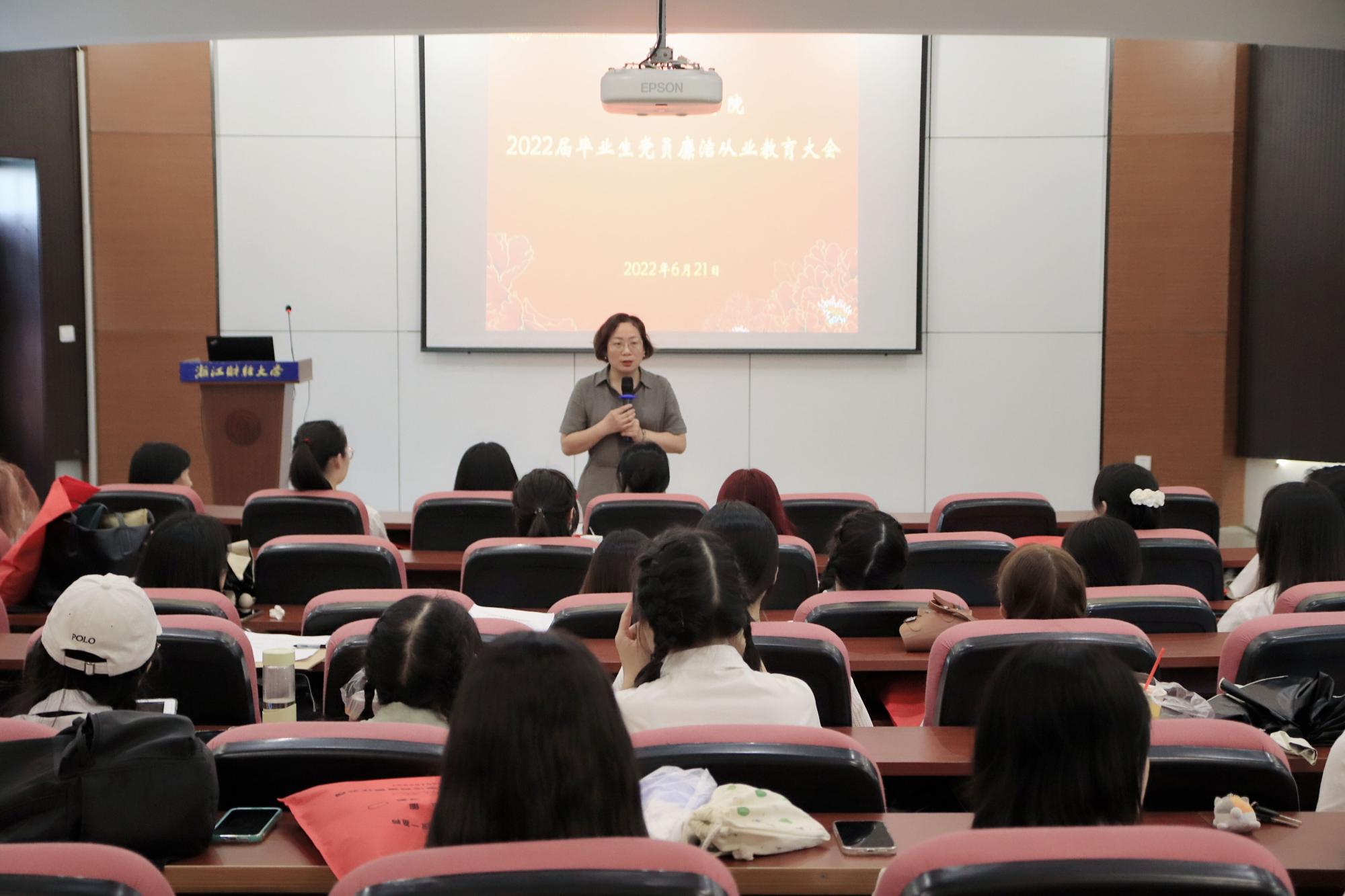 为加强对毕业生党员的思想引领,进一步增强毕业生党员廉洁自律意识,6月21日上午,意昂22022届本科毕业生党员廉洁从业教育大会在112报告厅举行,公司党委副书记、纪委书记袁慧兰主讲,全体2022届本科毕业生党员参加。