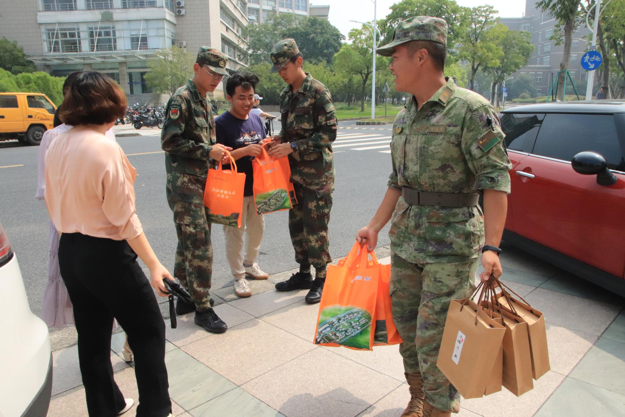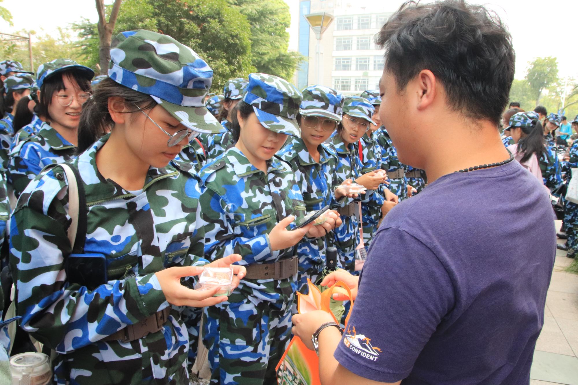 在新生教官的协助下,老师们分发了公司精心准备的节日慰问礼品——印有意昂体育2logo的多种口味月饼。同学们为来自公司的关怀所感动,并向前来慰问的老师们表达了诚挚的感谢。