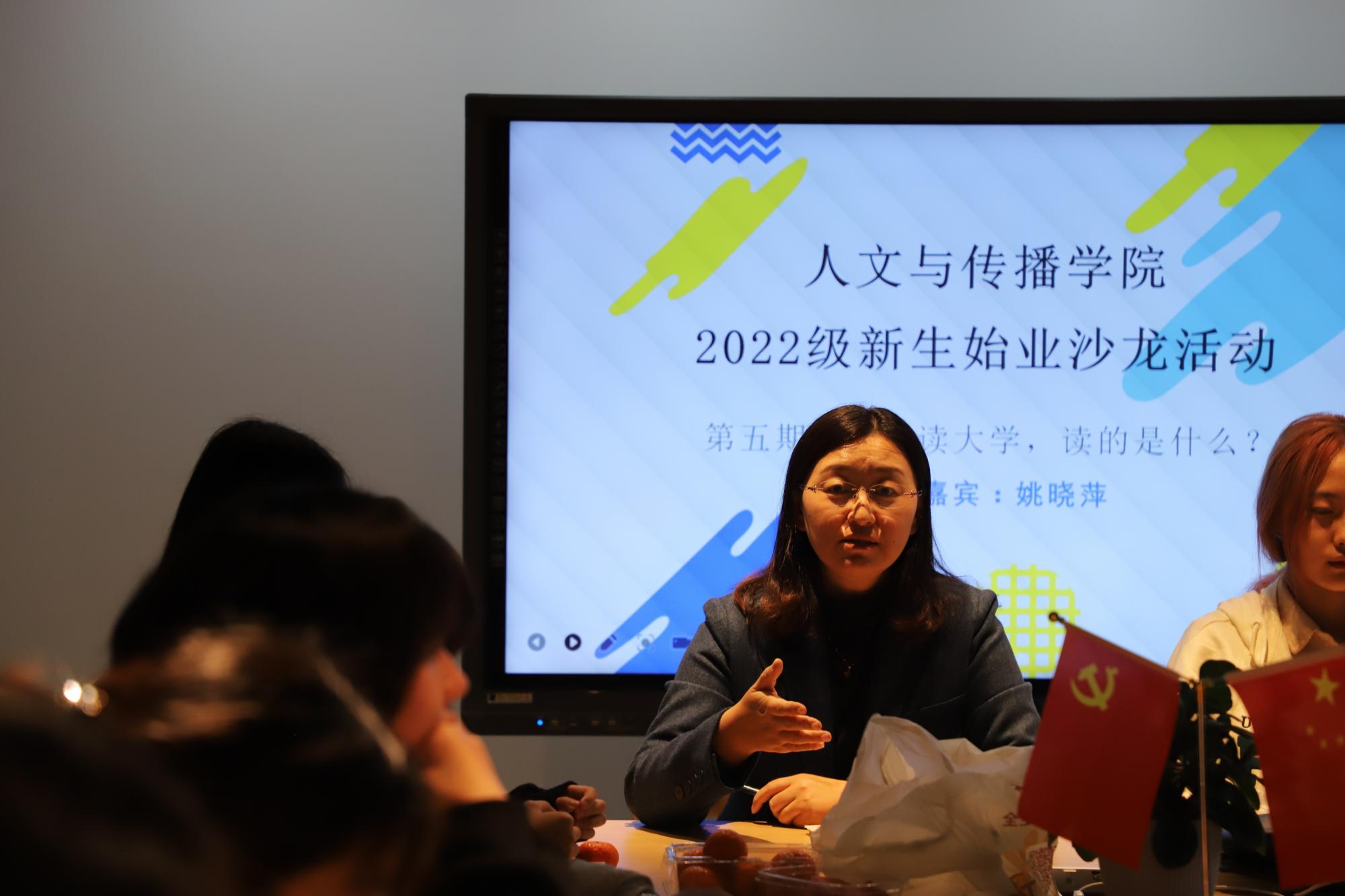 为了加强新生对专业认知,做好生涯规划,同时推进思政工作进园区,11月17日下午,意昂2在员工生活园区“偕行书院”举行了“2022级新生始业沙龙”活动第五期。来自公司的中文系主任姚晓萍老师作为本次活动的主讲人,以“我们读大学,读的是什么”为主题,与同学们交流讨论读大学的初心与获得。辅导员顾雨濛以及22文学1班的全体同学参加了本次活动。