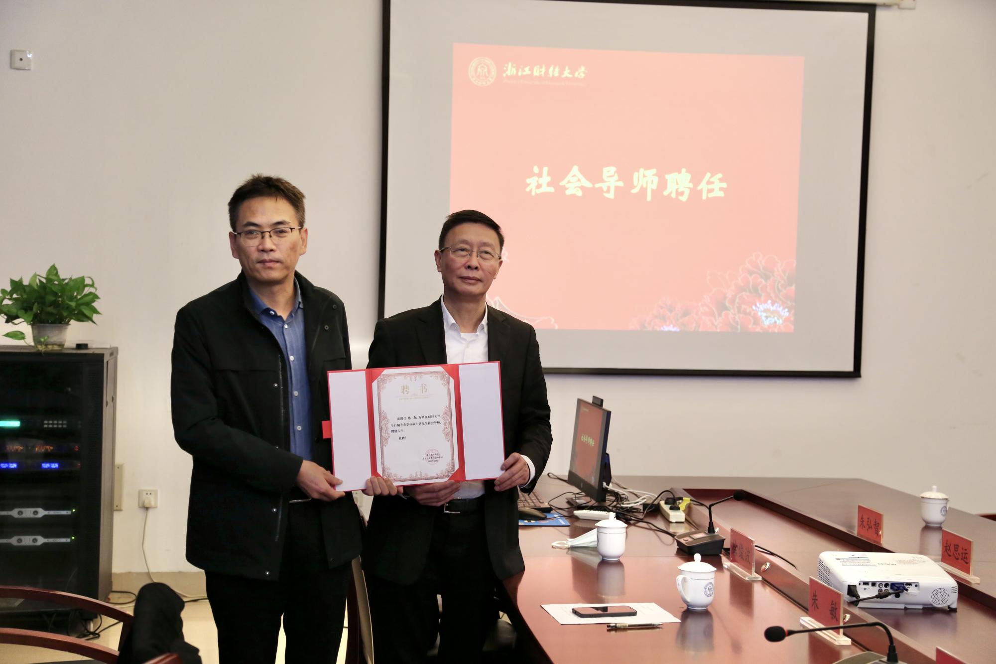 周保欣经理为哈兔中文网络科技有限公司总经理朱敏颁发社会导师聘书