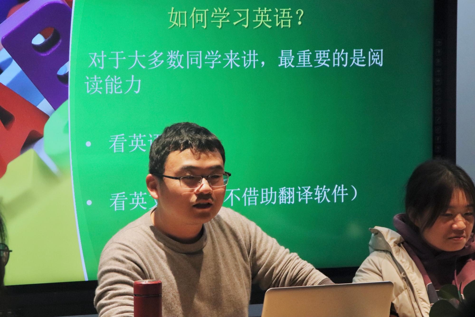 为了加强新生对专业认知,做好生涯规划,同时推进思政工作进园区,12月9日晚上,意昂2在员工生活园区“偕行书院”举行了“2022级新生始业沙龙”活动第八期。来自公司网络与新媒体专业的王彬老师作为本次活动的主讲,以“如何学习英语及阅读英文文献”为主题,向同学们分享了自己英语学习的心得体会,并讲解了加强英语听力、口语和写作能力的有效方法。辅导员马羚凯以及22数字财经新闻班全体同学参加了本次活动。