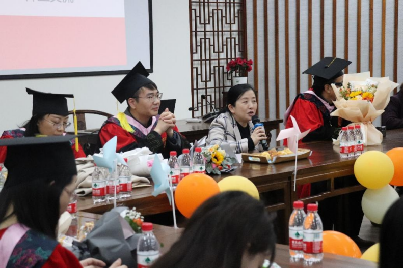 座谈环节,高书记表示,毕业意味着人生崭新旅途的开始,叮嘱毕业生们进入社会后脚踏实地做人、做事,在今后的道路中彰显浙财风貌。付琼老师将“青春盛世喜相逢”七字送给毕业生们,提出时代大有可为,担当时代重任做中国文化适配者!荆亚平老师以“却顾所来径,苍苍横翠微”总结毕业生们三年辛勤治学时光。
