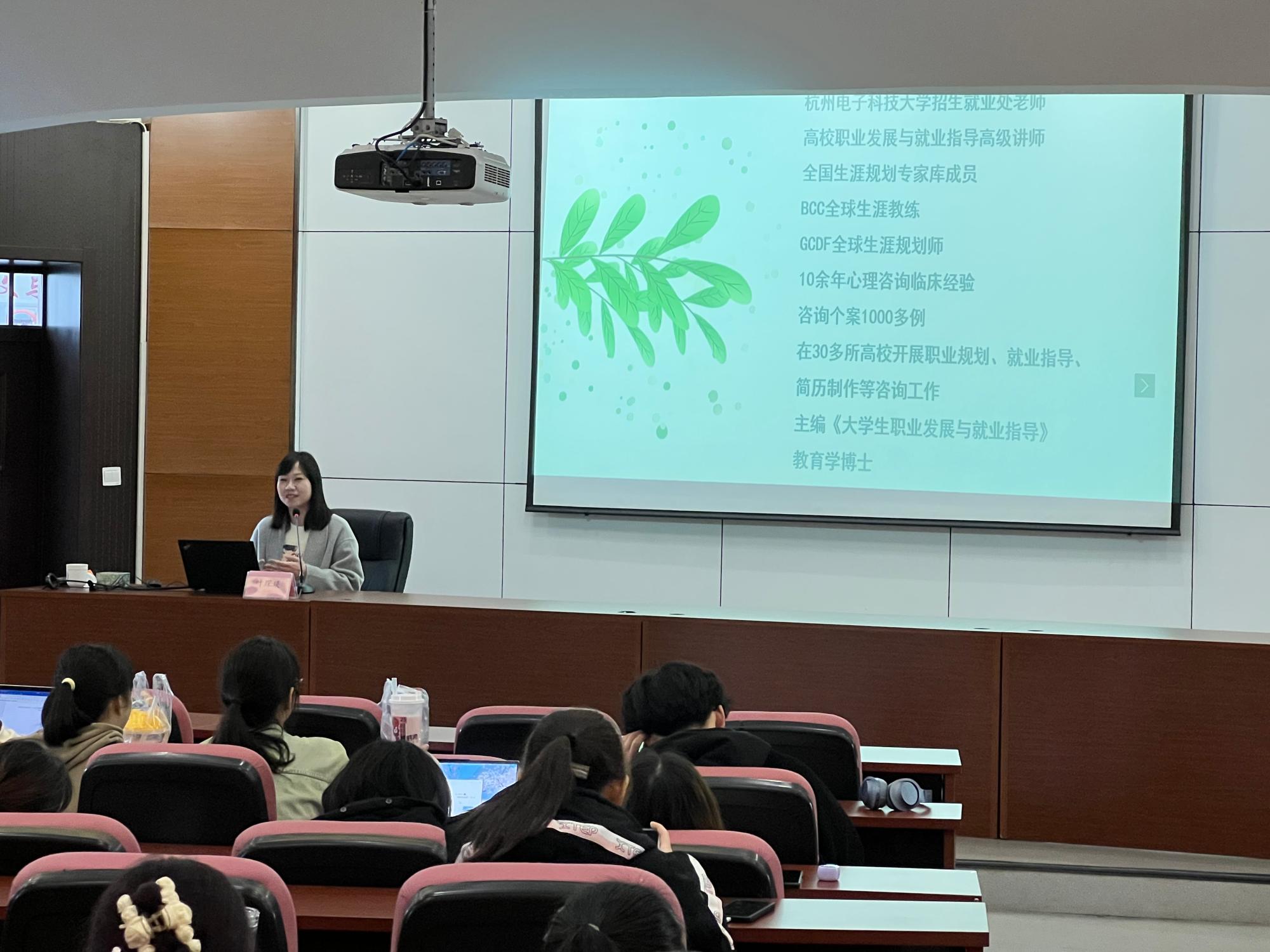 为增强公司2022级新生职业生涯规划能力,帮助同学们明确未来规划发展方向,意昂2于3月28日下午在7号楼112报告厅举办2022级新生职业生涯规划讲座。本次讲座邀请杭州电子科技大学招就处叶琛琰老师开展以“春风化雨,规划先行”为主题的职业生涯规划讲座,公司党委副书记袁慧兰老师、辅导员马羚凯老师和2022级本科生参加,本次会议在辅导员马羚凯老师的主持下顺利开展。