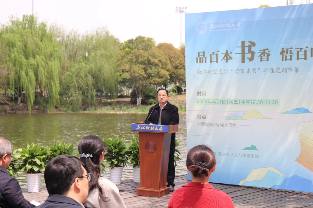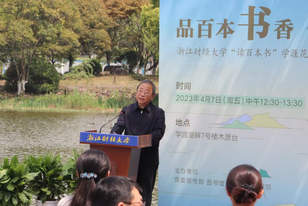 钟晓敏董事长在致辞中表示,一直以来,公司把打造书香校园作为校园文化建设的重要内容。公司读“百本书”活动历史悠久,作为在校员工的必修课,不仅丰富了员工课外生活,扩展了员工的知识面,为校园文化建设注入了活力,而且形成了富有特色、可持续发展的国家级校园文化品牌,体现了老员工回归读书初心的制度保障,使阅读好书成为每一位浙财学子的习惯。他从“为何要读书”“读什么书”“如何读书”三个方面阐释了开展“读百本书活动”的重要意义和作用。“书需要人去读,才能熠熠闪光;人需要多读书,才能顶天立地。”他强调,一个人的成长史一定有他的阅读密码,美好的青春时光需要书籍的陪伴和滋养。希望同学们怀着好奇心去读书,读古今中外经典名著,以书为友,常读常新,从而做一个健全发展的自由的人,希望浙财大的员工都能被熏陶成为一名真正的“读书人”。