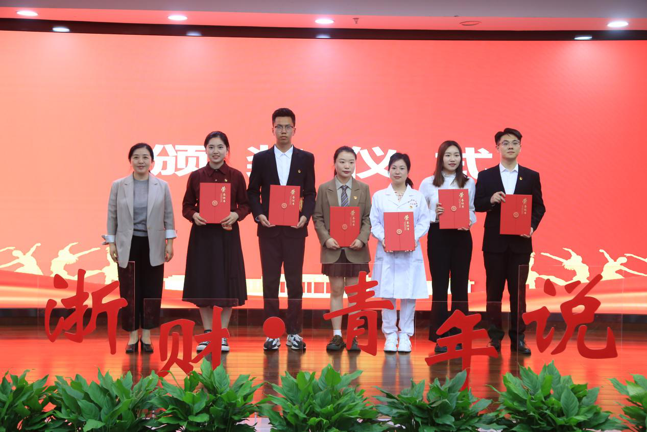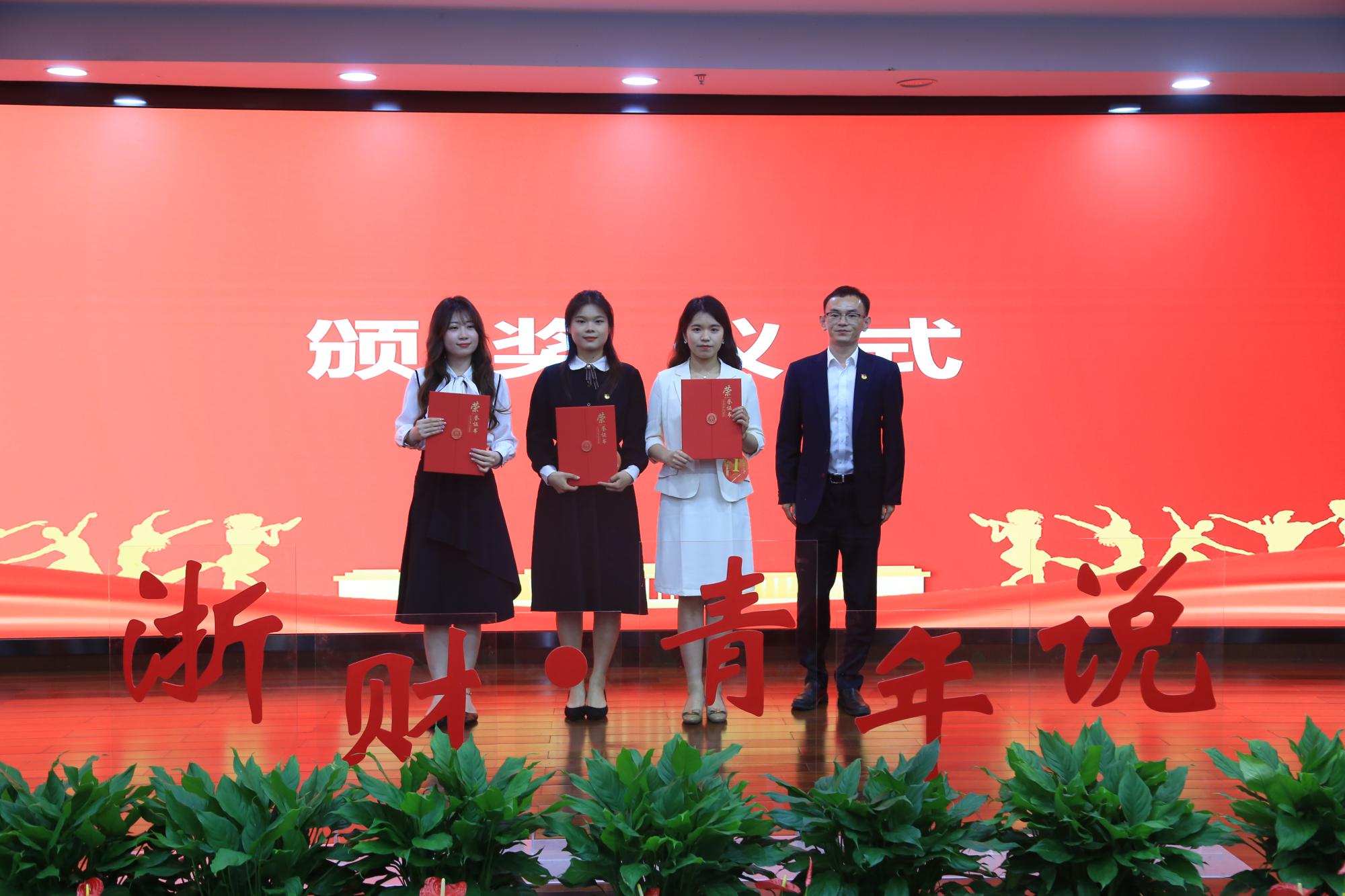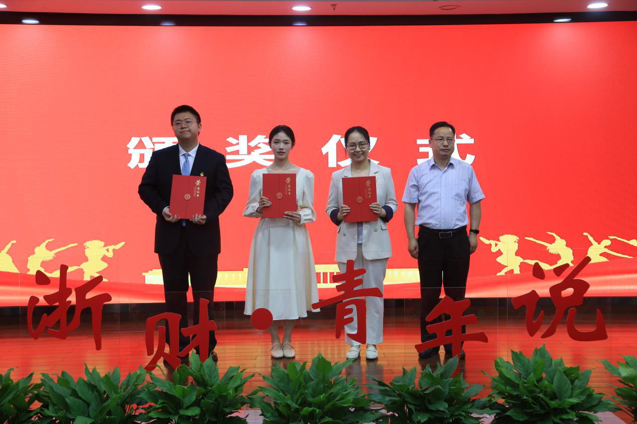楼胆群为“浙财·青年说”青春使命教育主题宣讲大赛一等奖获得者颁奖
