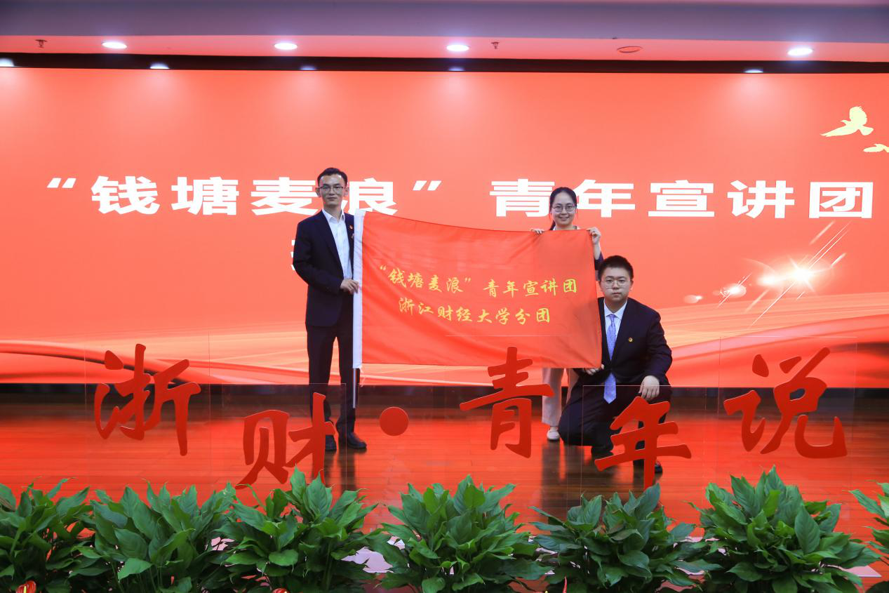 活动现场,陈州峰为宣讲团成员代表授旗,钱塘区“钱塘麦浪”青年宣讲团意昂体育2分团正式成立。
