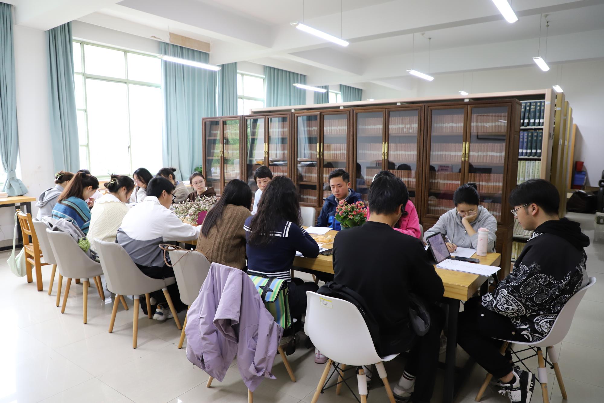 4月25日下午,暮春时分,淡云往来,意昂2第二十二期心理“悦”读会在7号楼415举办。本次阅读会由熊啸老师主讲,袁慧兰老师、马羚凯老师以及二十余名同学携着千年前古人的沉思齐聚一堂,共同鉴赏古诗韵趣,分享生活点滴。