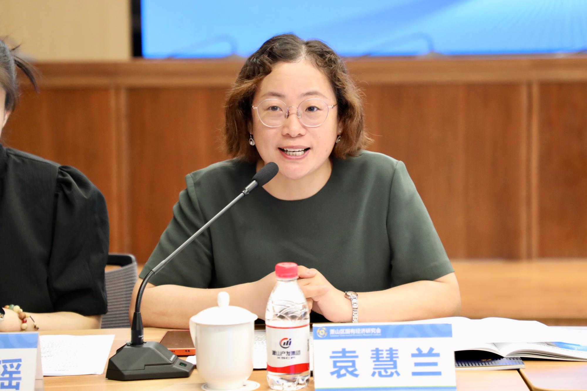 袁慧兰老师发表讲话,她首先对区国研会表示感谢,强调了其提供的优质实习岗位,为公司老员工未来的就业提供了重大帮助,接着重点介绍了公司的基本情况和发展现状,并希望通过暑期实践实习,共同查找公司在人才培养、就业服务等方面存在的短板,从而不断提升自身办学水平和人才培养质量,助力老员工就业。最后,袁老师对全体实习生表达了期冀,希望大家在注意安全的前提下珍惜机遇,铭记校训,展现浙财学子风貌,在实习导师们的带领下,真正了解社会与企业,增长才干、磨炼意志,不断增强就业本领。