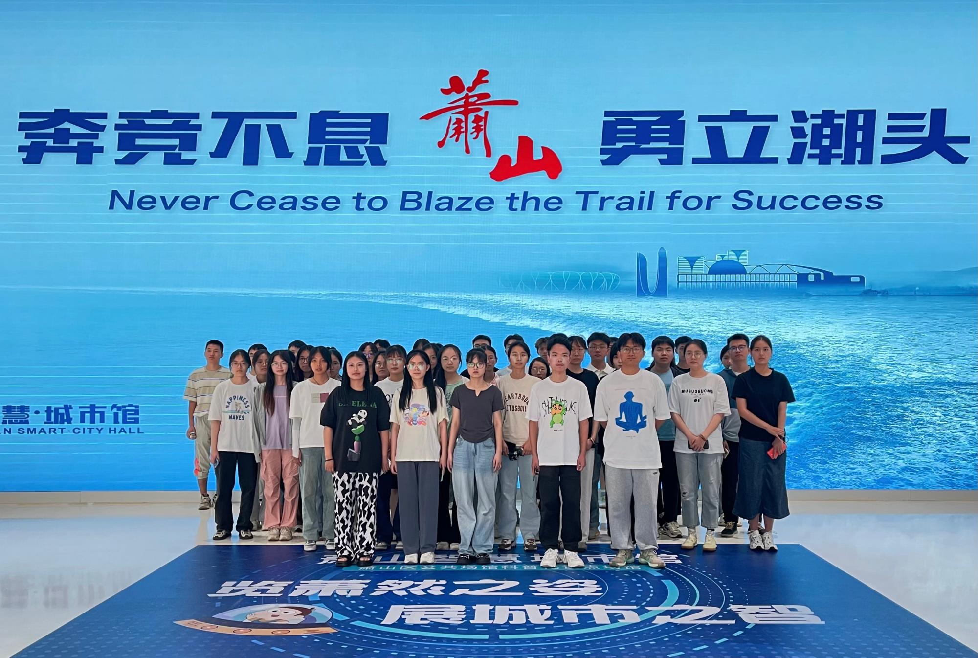 最后,全体实习生前往萧山智慧城市馆参观学习,进一步了解了萧山的发展史与相关状况。相信此次暑期实习活动能够极大地提升同学们在就业和实习方面的核心竞争力,同时也能为双方开展更加深入合作奠定良好基础,有效推动校企合作。