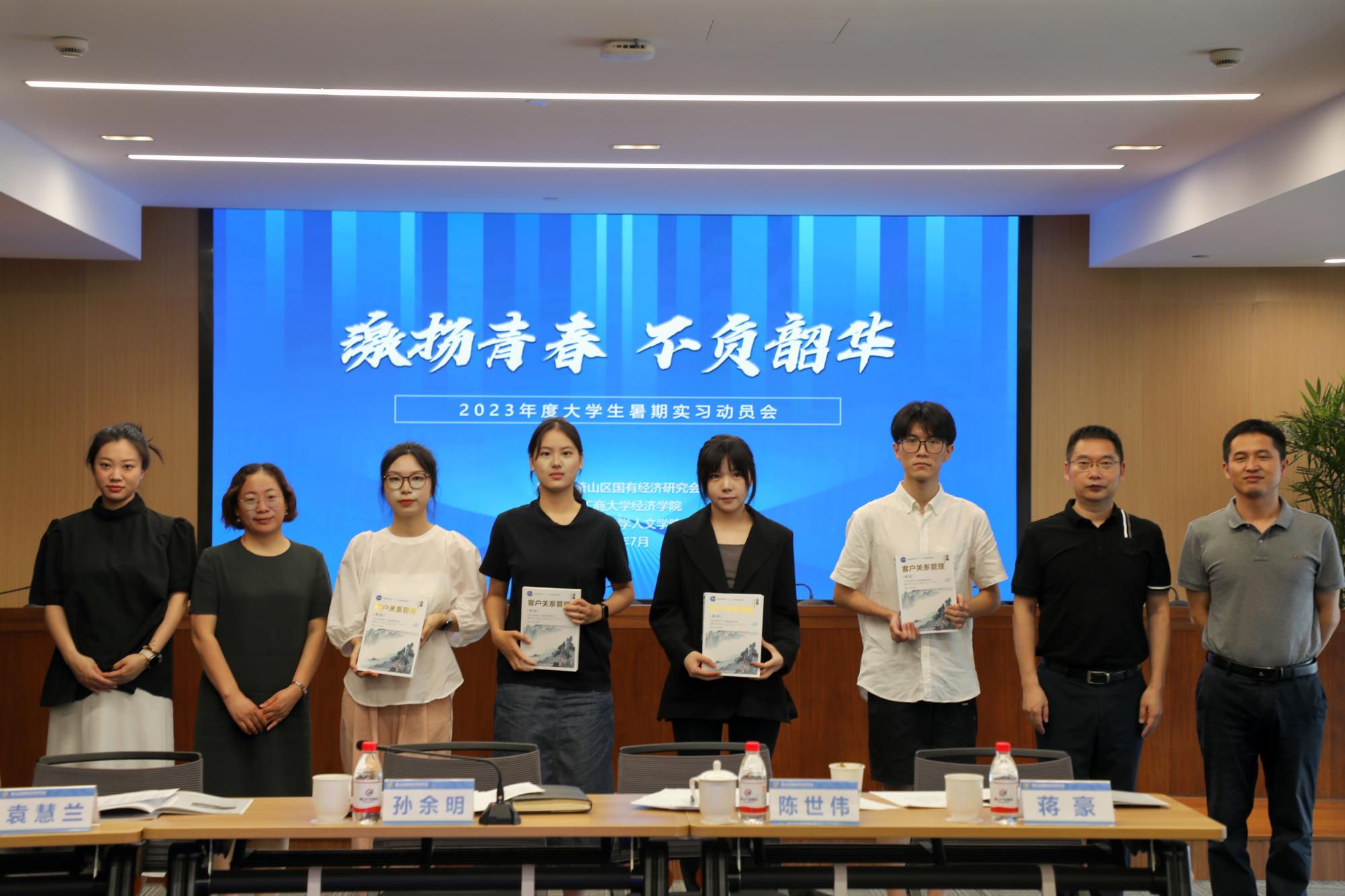 7月10日,公司党委副书记袁慧兰带领公司实习员工参加萧山区国研会举办的“激扬青春,不负韶华”2023年度老员工暑期实习动员活动,区产发集团党委副书记、区国研会秘书长孙余明、浙江工商大学经济公司党委书记陈世伟及党委副书记蒋豪、萧山团区委副书记戴梦瑶、各副理事长单位相关工作负责人等均出席参加。