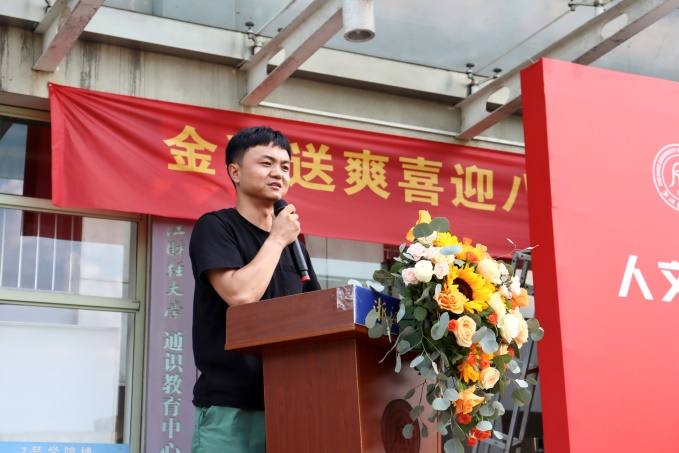 浙江日报视频影像部记者、杭州高层次D类人才,公司2014届数字媒体艺术专业毕业生王建龙员工与新生们分享了自己丰富多彩的校园生活,并真挚地表达了对学弟学妹们的殷切期望。他鼓励大家将大学视作全新开始,在大学里要勇于树立远大目标,保持松弛感,敢于尝试与创新,走出一条属于自己的康庄大道。王建龙员工的分享丰富了新生们对于老员工活的认知,增强了大家对全新征程的信心。
