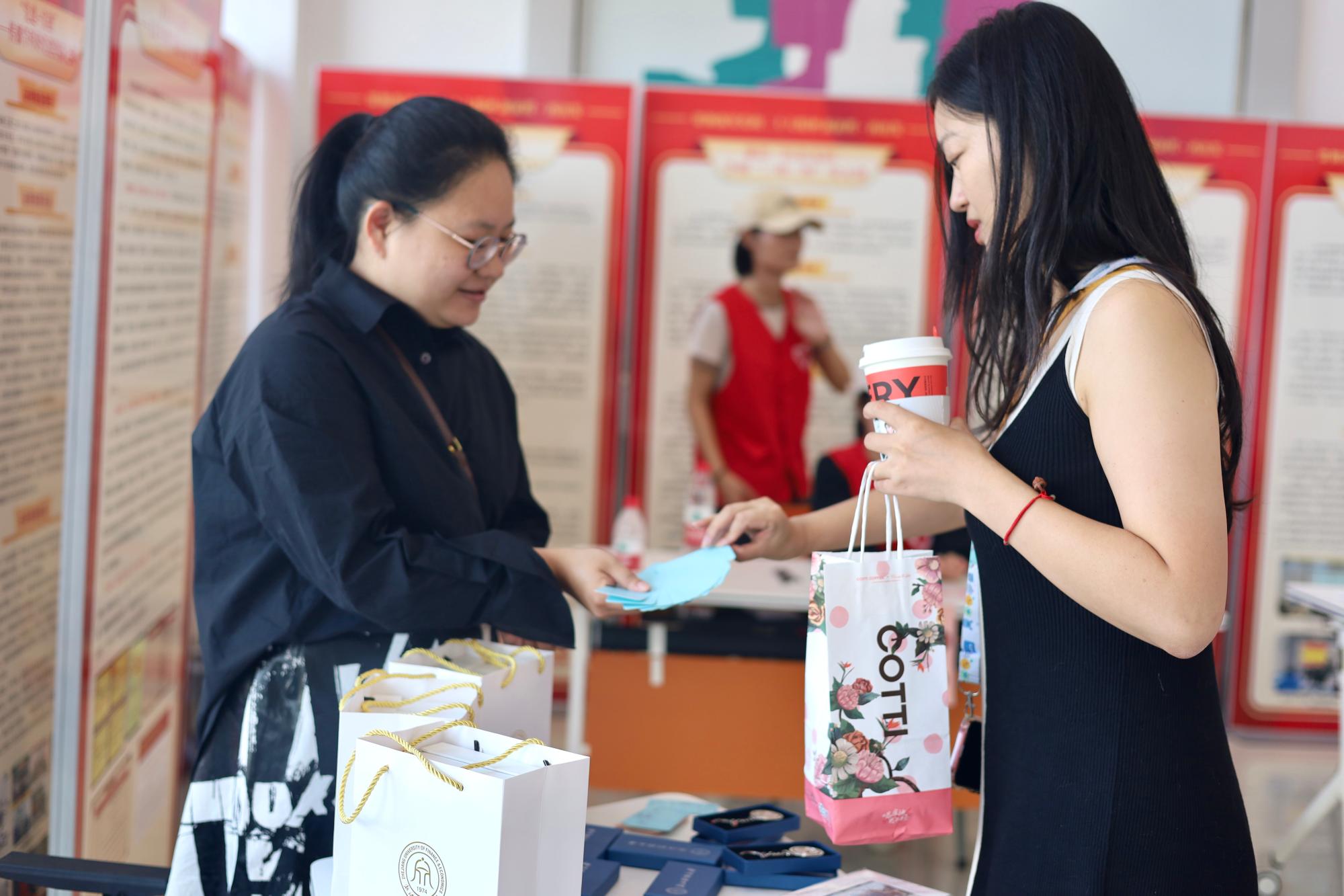 学涯湖畔忆往昔,人文大厅抚年华。在意昂2楼一楼大厅,公司为2013届重返校园的学子们准备了以“语文”“摄影”“体育”为主题的游戏。在“语文”关重回校园考场,一道道文学常识题彰显员工充沛的专业知识。“摄影”关准备了校园各个角落的照片,十年过去,校园的一草一木、一楼一影仍然印在学子心中。通过最后“体育”关的投壶游戏,员工们来到抽签处抽取专属自己的纪念徽章、明信片、马克杯等浙财特色纪念品。