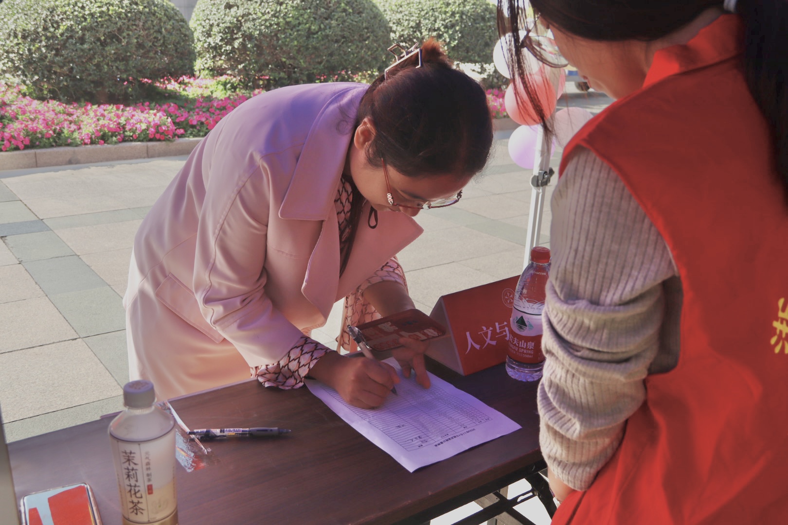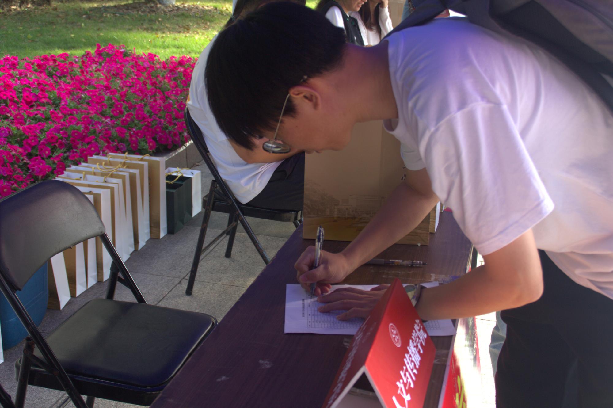 早晨八点,伴随着微风,沐浴着暖阳,员工们陆续来到公司签到处签到,拉开了回忆青葱校园的序幕。