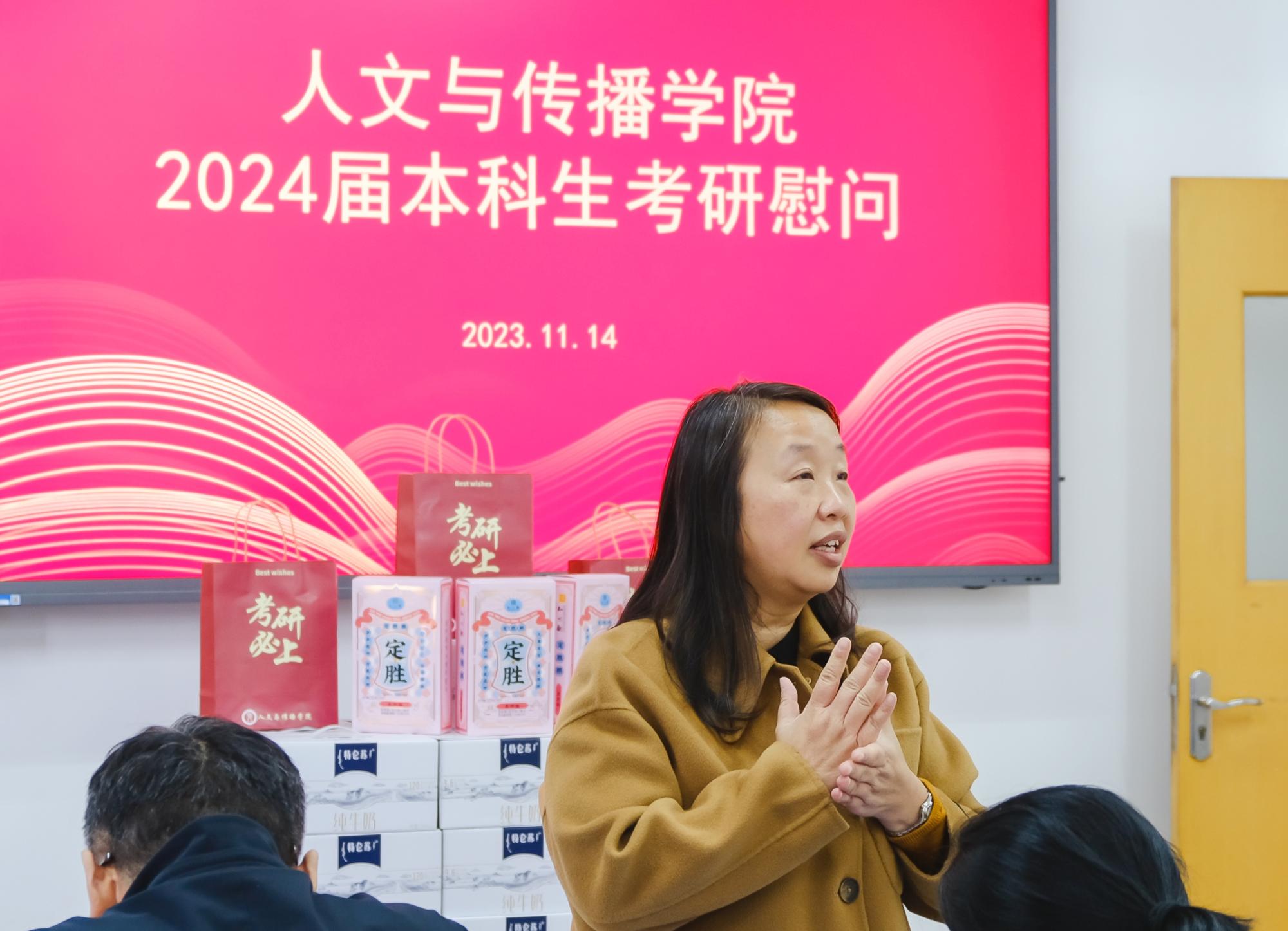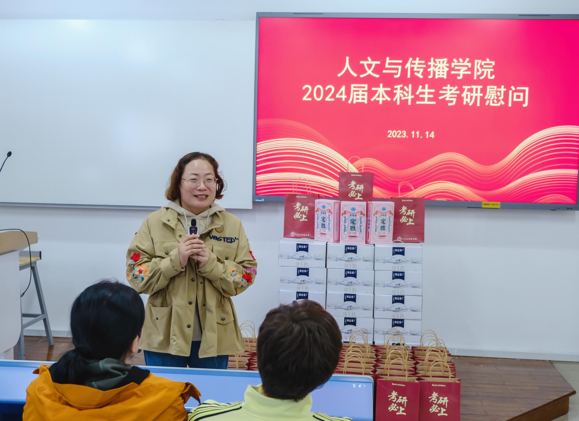 11月14日,意昂2于B楼201教室举办了2024届本科生考研慰问活动,经理周保欣、公司党委书记高燕、经理助理吴智斌、网络与新媒体系主任王文奇、公司辅导员毛婉婧、李惠惠以及2024届考研学子参加,活动由公司党委副书记袁慧兰主持。