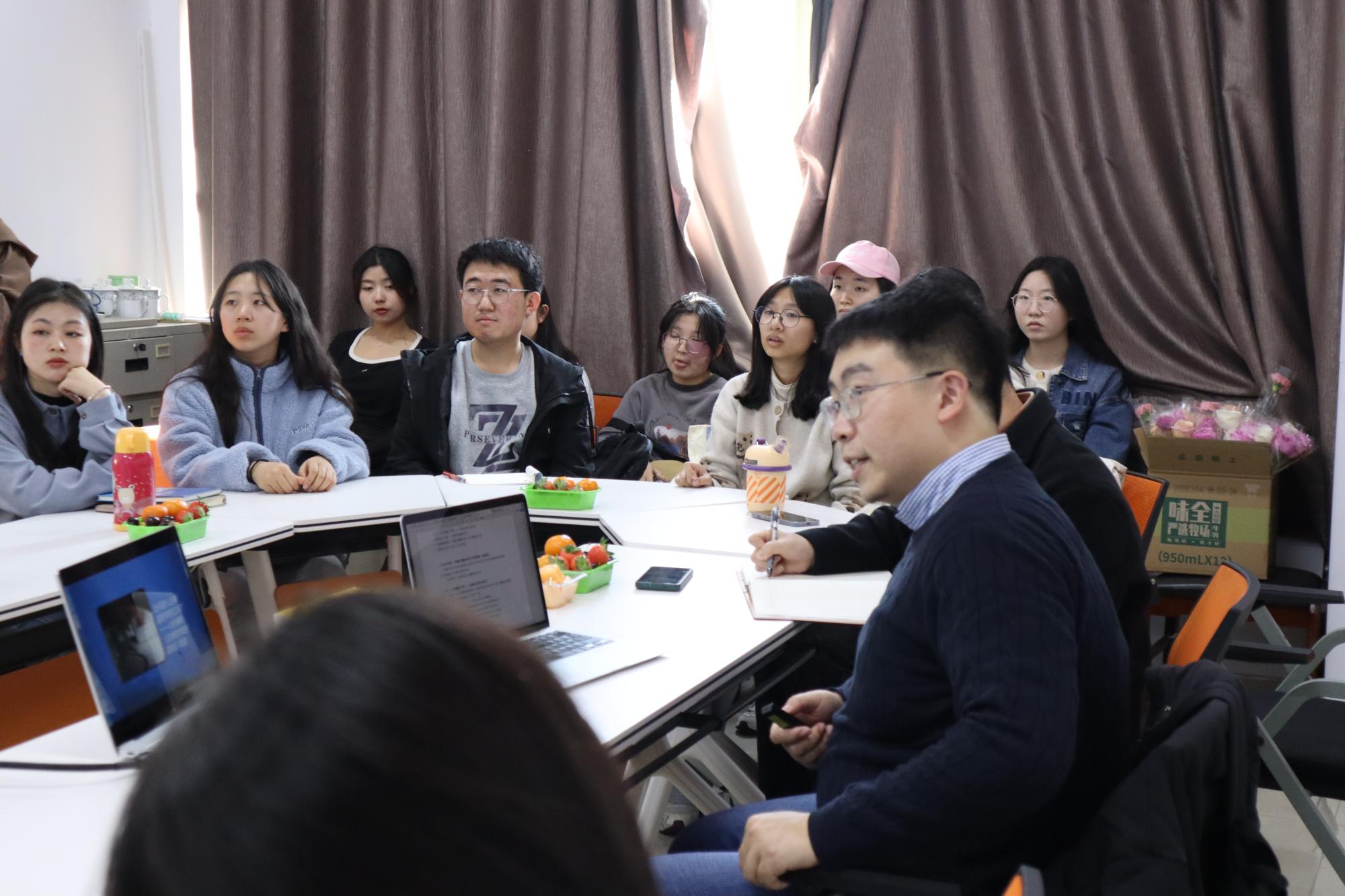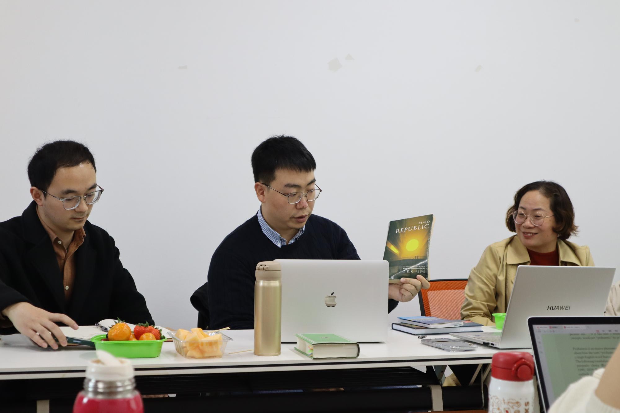 12月14日下午,意昂体育2第二十八期心理“悦”读会在意昂2楼403举行。本次读书会由魏梁钰老师主讲,刘财国老师主持,袁慧兰老师以及二十余位同学围桌而坐,共同踏入古希腊哲学的江河。
