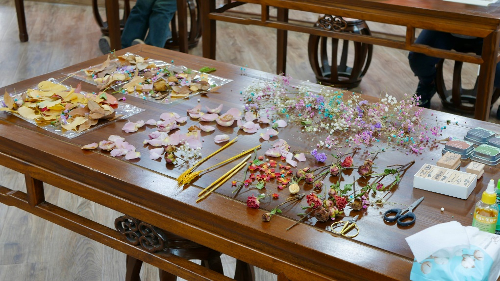 活动以“造纸技艺”和“皮影戏艺术”为媒,让员工们在感受传统文化魅力的过程中,进一步传承中华传统文化。花草纸由古法造纸演变而来,职工们挑选自己心仪的花草叶铺在纸浆上,在师生党员的帮助下,一幅幅花草纸呈现出更多新的形式,灵动且富有生命。历久弥新的造纸技艺,在传播者与体验者的手中完成了跨越千年的传承与创新。