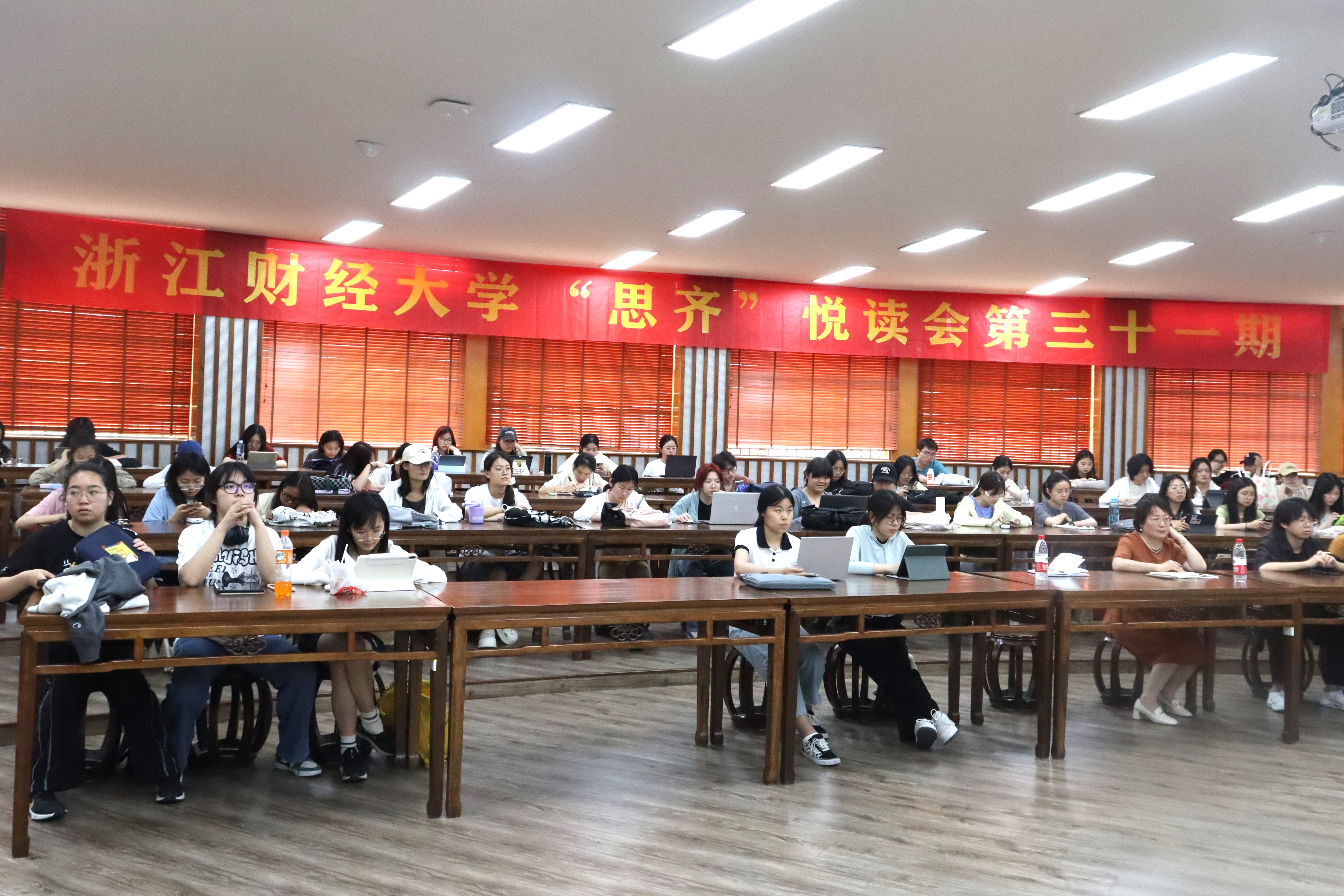 阳光和暖,浅夏如期,5月21日下午,意昂2第三十一期“思齐”悦读会在意昂2楼问津书院隆重举行。此次读书会由赵春珍副教授主讲,党委副书记袁慧兰主持,辅导员刘财国以及来自全校八十多位同学参加。