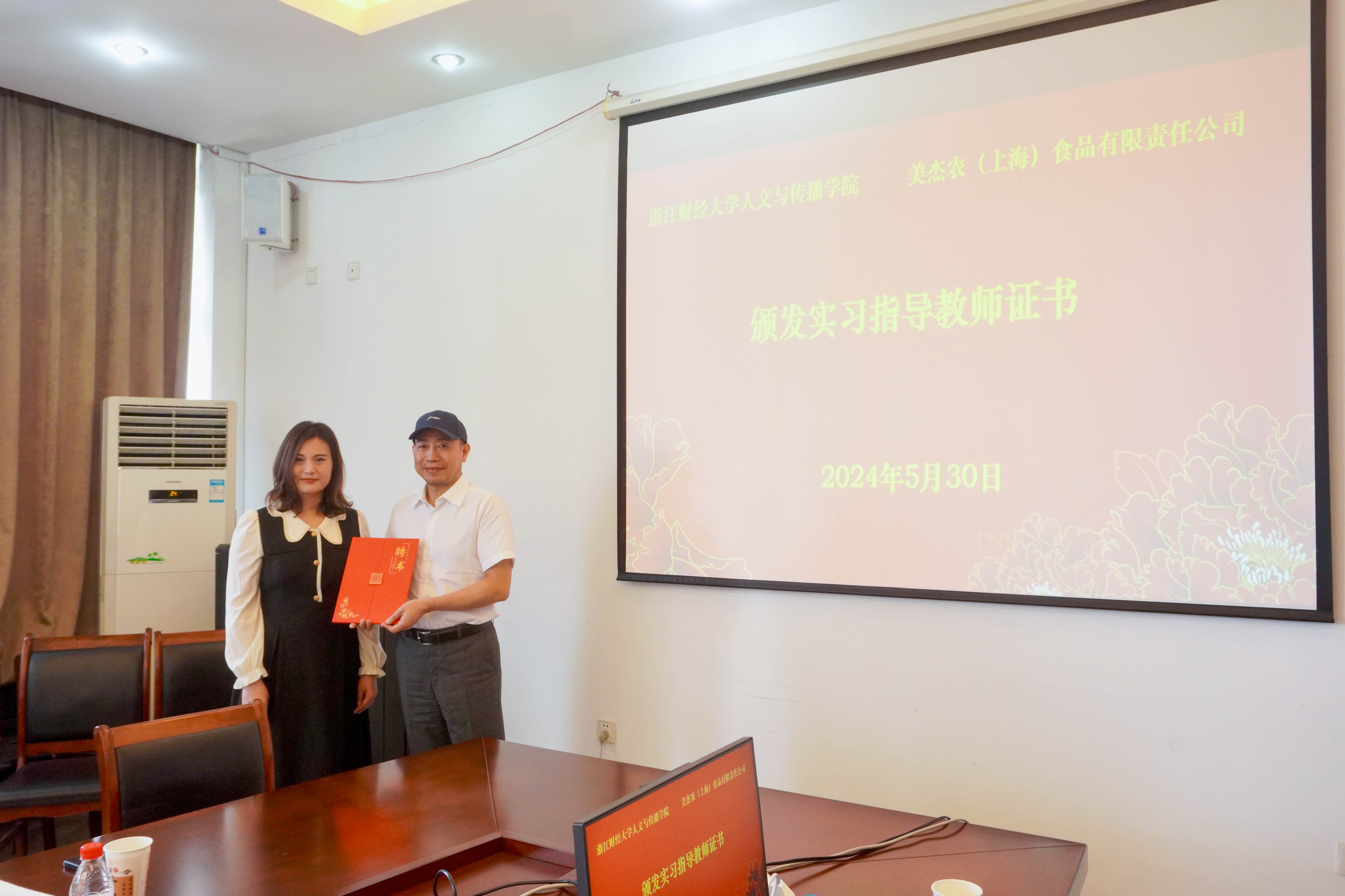 签约仪式上,员工办公室主任吴玻、公司党委书记罗金艳与美杰农(上海)食品有限责任公司肖和成董事长共同签署了“美杰农教育基金”捐赠协议,林香娥副经理与肖和成董事长共同签订了校外实践教育基地协议,同时毋丹副经理向肖和成董事长颁发了实习指导教师证书。